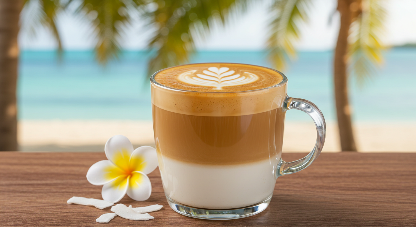 Coconut latte, geleneksel latte lezzetinin tropikal bir yorumudur. Hindistan cevizi sütü ile yapılan bu kahve, hem hafif tatlı bir aroma hem de kremsi bir doku sunar. Süt yerine hindistan cevizi sütü kullanılması, laktoz intoleransı olanlar için mükemmel bir alternatiftir. Ayrıca bitkisel süt tercihiyle vegan beslenme düzenine de uyum sağlar.